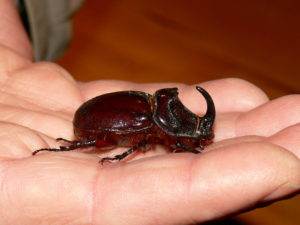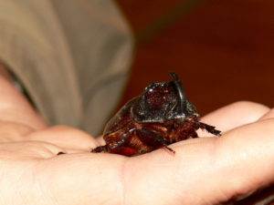 Nosorožík byl velice fotogenický, nesnažil se nikam prchat a tak jsem pořídila několik fotografií. Poté jsme ho odnesli hlouběji do lesa.