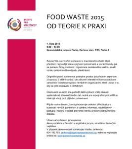 – o mezinárodních trendech, omezujících neudržitelné plýtvání potravinami v bohatých částech světa, kam patří i Česká republika (Food Waste 2015, 1.10.2015)