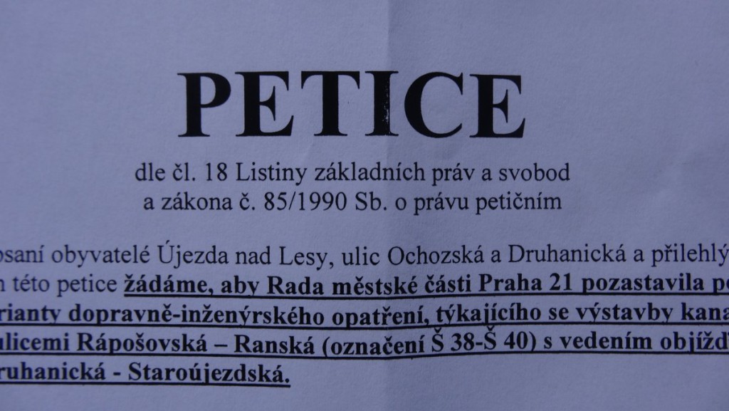 PETICE za řádné projednání objízdné trasy v Újezdě nad Lesy
