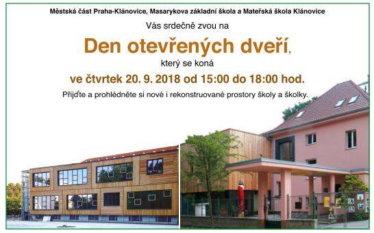 Pozvání do Klánovické školy a školky na Den otevřených dveří ve čtvrtek 20.9.2018