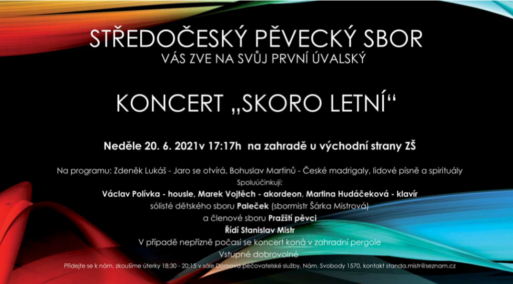Pozvání na „Skoro letní“ koncert do Úval v neděli 20. 6. 2021