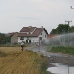 V inkriminovanou neděli nepanovalo ani zdaleka takové horko, jakým “vyhrožovala” předpověď počasí. Sešli jsme se kolem dvanácté na nádraží v Roztokách u Prahy. Potřebovali jsme se dostat s koly přes Vltavu přívozem. Převozník vyslyšel naše skupinové pokřikování a přijel pro nás o půl hodiny dřív než bylo v rozpisu. Tak jsme se dostali na protější, takříkajíc “klecanský” břeh. Po cyklotrase jsme jeli vesnicemi směrem na Kostelec nad Labem. V Měšicích jsme projeli zámeckým parkem a vycvakli se před krásnou symetrickou historickou budovou zámku, v němž je nyní umístěna nemocnice. V Kostelci nad Labem se uskutečnilo nevyhnutelné posezení v tamější cukrárně provázené tradiční konsumací kvalitních kalorických bomb místní výroby. Z Kostelce se po modré turistické jelo k rybníku v Ovčárech, kde se konalo úžasně příjemné vykoupání v poměrně čisté vodě. Po červené jsme kolem písníku ve Lhotě pokračovali do Hlavence. Tam stojí pomník císaře Karla VI., jedna z nejškaredějších soch na českém území, před níž nebylo možno se nevyfotit. Z Hlavence jsme šlapali úzkými lesními asfaltkami přes Otradovice a kolem úpravny vody v Káraném přes lávku přes Labe do Lázní Toušeň. Po osmé večer jsme dojeli k metru na Černém Mostě. V nohou jsme měli po osmi hodinách “v sedle” něco přes 60 kilometrů. Nebylo to moc, ale zážitků a pěkných optických vjemů bylo až až.