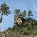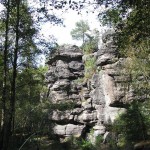 Začátek trasy byl na nádraží v Děčíně. Po cyklotrase 3017 jsem se přes obec Bělou u Děčína „vyškrábal“ až na rozcestí pod Děčínským Sněžníkem. Cyklotrasa – převážně úzká opuštěná asfaltka – vedla kolem pěkných skal a tichým lesem.
