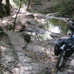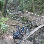 Cesta Beroun – Radotín trvala nějakých 7 hodin. Z toho hodina čistého času připadla na focení na štrece, hodinu jsem fotil Solvayovy Lomy, půl hodiny padlo na proplandání se Bubovickými Vodopády a půl hodiny na polívku v Karlštejně. Délka terénní trasy asi nepřesáhla 30 km, ale energeticky i „dojmově“ vydala na trojnásobek. Tahle červená totiž spojuje nejen nádherná místa české historie, ale zahrnuje i relativně „dobrodružné“ přírodní překážky a pohledy a výhledy. Nicméně určitě není pro sváteční cyklisty. Je to spíš trasa pro pěší turisty. Po 25ti letech života v Praze jsem ji „objevil“ a prvně jel až nyní a byl nadšen jejím průběhem, jakožto i pocitem odpoutání se od civilisace. A to přesto, že vzdálený hluk motorů byl prakticky stále odněkud slyšet. Tuto trasu mohu každopádně vřele doporučit všem romantikům, hobby-fotografům, případně hobby-historikům.