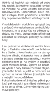 Z Observatoria Na Vyhlídce v Úvalech dohlédnete až na severní hranici Čech
