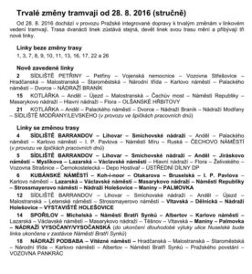 Nové trasy tramvají od 28.8.2016 – stručný popis: