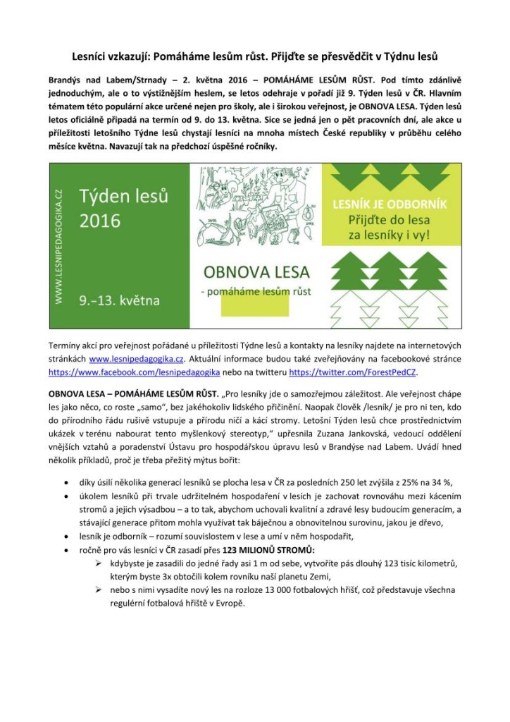 Týden lesů 2016: Pomáháme lesům růst! Pozvání do lesa i na vysílání ČRo