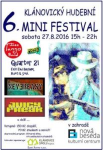 Druhým pozváním je již šestý ročník Klánovického hudebního minifestivalu v sobotu 27.8.2016 ZDE.