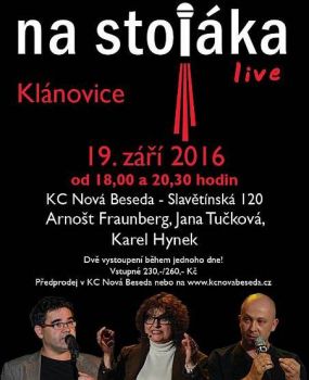 A třetím je upoutávka na zářijovou Stand Up Comedy Show NA STOJÁKA live, která je vždy velmi rychle vyprodaná – jedná o řadu sólových výstupů a scének současných oblíbených komiků – Arnošta Frauenberga, Jany Tučkové a Karla Hynka. V pondělí 19.9.2016, rezervujte si lístky ZDE.