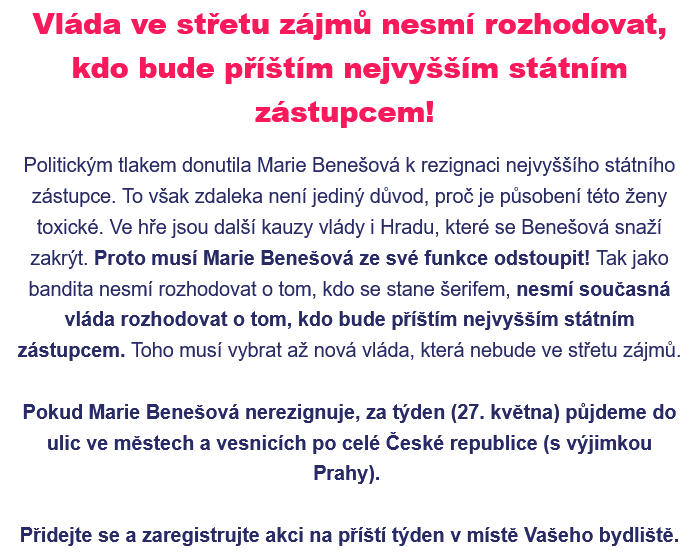 Sejdeme se 1. 6. opět v Praze na pochodu za spravedlivou vládu.
