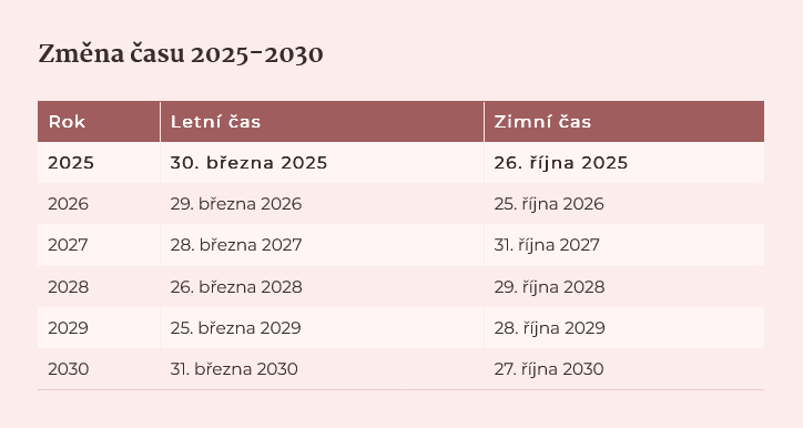 Návrat k astronomickému času (tzv. zimnímu) letos nastane poslední říjnovou neděli – 26. října 2025. Hodiny se posunou v noci ze soboty 25. na neděli 26. října o jednu hodinu zpět, ve tři hodiny ráno na druhou hodinu.