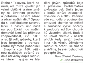 Zdroj: ŽÚ 6/2019, cerven_2019WEB Náhledový obrázek: ilustrační „plevel“ Zita KazdováMUDr. Zita Kazdová dobrovolnice v neziskovém sektoru, původní povolání stomatolog Přemýšlejme globálně, čiňme se lokálně – naše okolí i svět zázračně prokouknou! Úvaly Související příspěvkyAktuálně: dnes od 18 h protestní cyklojízda Karlínem s Auto*Matem26.9.2016Ohlédnutí za krajskými volbami v říjnu 2020 a informace od úvalského starosty v Životě Úval 11/20203.11.2020„Je tam jeden rohlík a teď tam přijde sto lidí a všichni chtějí rohlík,“ AB. Básně a jiné divy české politiky, aneb Psí uši9.5.2022 Předchozí příspěvekÚjezd má knihobudku místo telefonuDalší příspěvekPozvání do Škvorce na „International Day“ v sobotu 15.6.2019